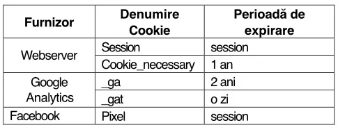 • session - cookie-uri temporare, necesare pentru validarea sesiunii dumneavoastră